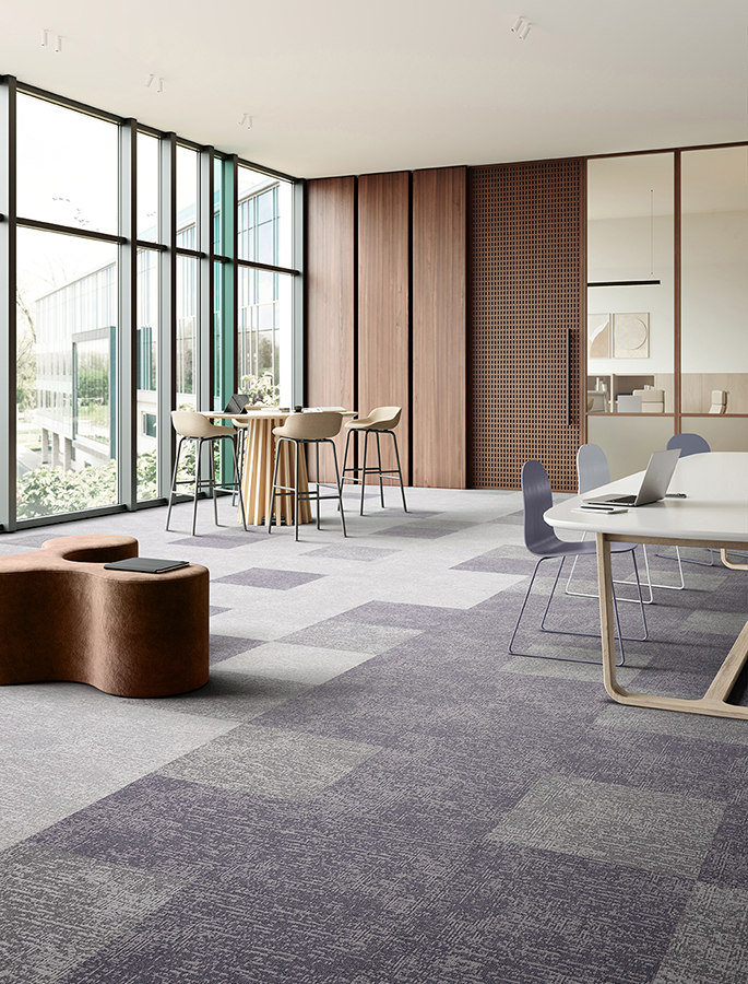 Carpet tiles provide warmth and acoustic benefits while offering practical advantages: