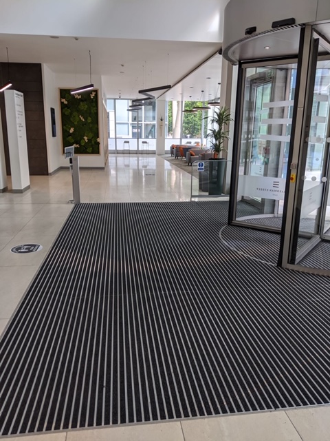 Complete your wall protection with our entrance matting solutions. These systems trap dirt and moisture at source, protecting your interior floors and reducing cleaning costs throughout your facility.